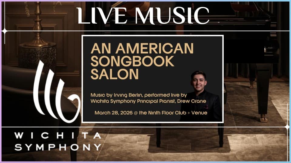 Join the Wichita Symphony for an elegant evening celebrating the timeless music of Irving Berlin. This American Songbook Salon will feature a live performance by Principal Pianist Drew Crane, along with dinner, drinks, and engaging conversation with fellow music supporters.